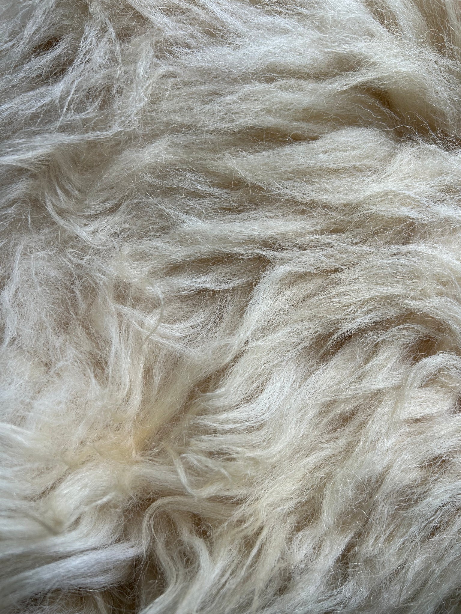 *Please note that this hide has holes as shown in the photo. Holes are not noticeable when the hide is laid flat due to the long wool*