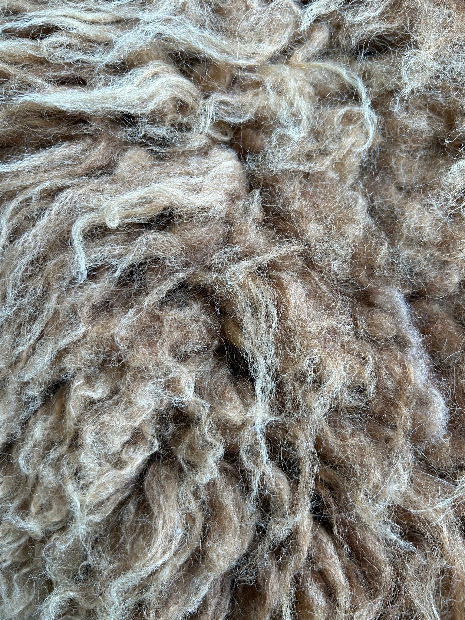 This is a one of a kind hide from our Navajo Churro sheep flock. All hides are unique in both color and texture of wool, as well as size. Each hide tells the story of the animal. We raise our churros using regenerative practices like rotational grazing on holistically managed pastures, and forest. Due to the animals natural lifestyle, hides may contain some vegetation