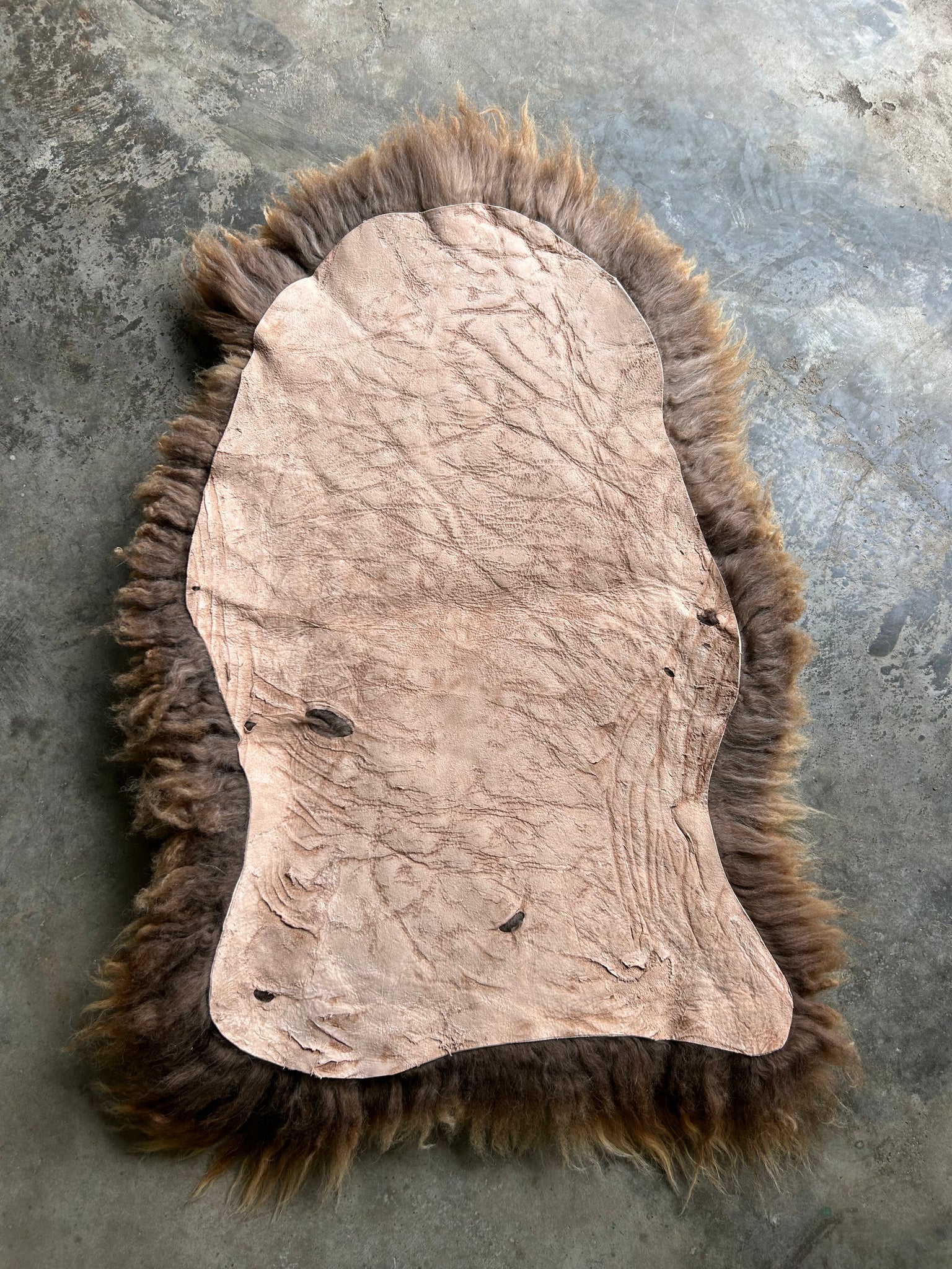 *Please note that this hide has holes as shown in the photo. Holes are not noticeable when the hide is laid flat due to the long wool*